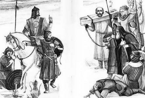 Михаила Тверского отправляют на суд в Сарай. Иллюстрация с сайта Histroy-doc.ru