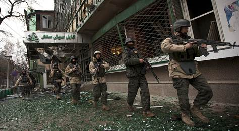 Во вторник в центре столице Афганистана прогремели около десяти взрывов, на улицах была слышна стрельба. Боевики атаковали дворец президента Хамида Карзая, а также здание министерства обороны страны, расположенное рядом. По данным агентства Рейтер, боевики также окружили отель «Ариана», где находится бюро ЦРУ в Афганистане. Бой длился порядка 90 минут, афганские власти заявили, что отбили нападение, отметив, что несколько боевиков были ликвидированы.
