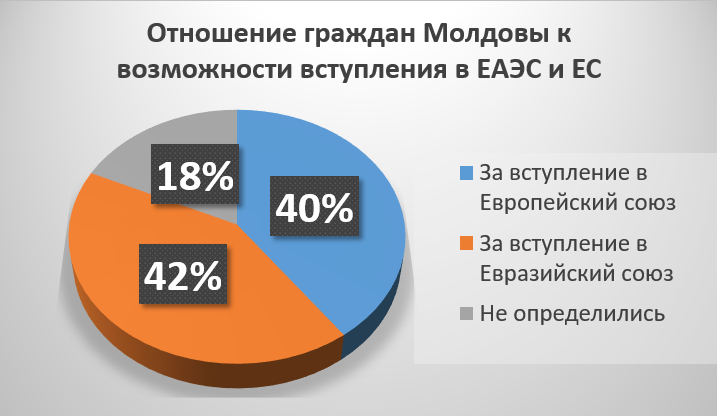 По словам председателя Ассоциации социологов и демографов Молдовы Виталия Мокану, за вступление в Евразийский союз оценивается гражданами страны как более предпочтительное, чем вступление в ЕС.