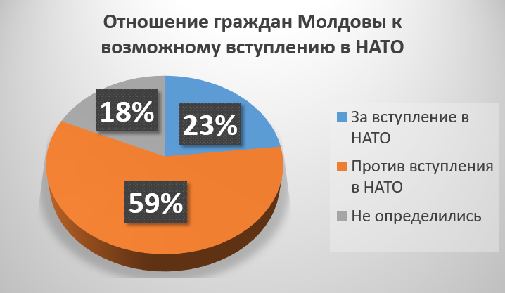 Схожего мнения придерживаются и граждане Молдовы – об этом говорят итоги социологического опроса Ассоциации социологов и демографов Молдовы. Так, в случае референдума против вступления республики в НАТО проголосовало бы более половины молдаван.