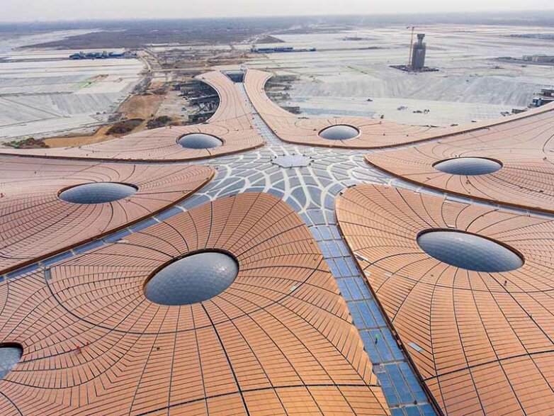Пекинский хаб Дасин не только самый большой в мире, но и очень прогрессивный – 10% используемой там электроэнергии генерируют солнечные батареи
