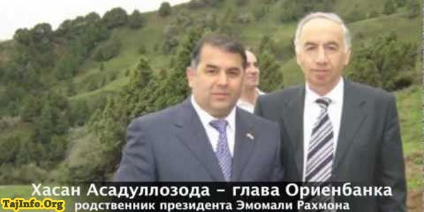 Брат жены Рахмона Хасан Асадуллозода контролирует, пожалуй, самый обширный пласт таджикского бизнеса. Официально он занимает лишь должность председателя правления «Ориенбанка». Фактически же под его контролем крупнейший алюминиевый завод страны «ТАЛКО», частная авиакомпания «Сомон Эйр», ряд отелей и зон отдыха, а также хлопковый бизнес. В Таджикистане считают, что наркотрафик в стране контролирует также Асадуллозода.