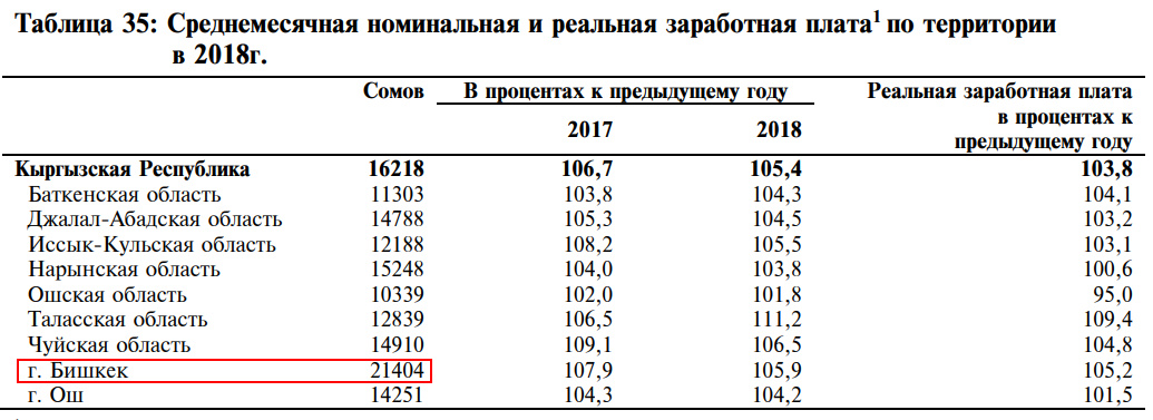 Если верить официальной статистике, то средняя зарплата в Бишкеке по итогам 2018 года составила 21 404 сома.