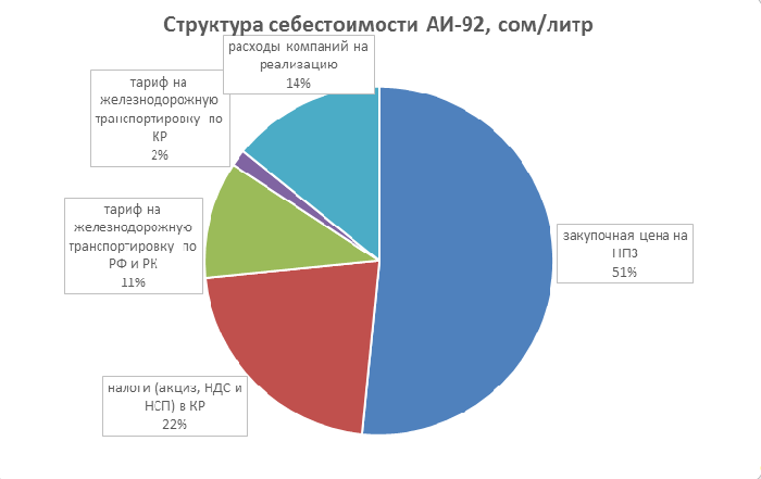 Структура стоимости ГСМ на АЗС на примере бензина марки Аи-92 выглядит следующим образом: