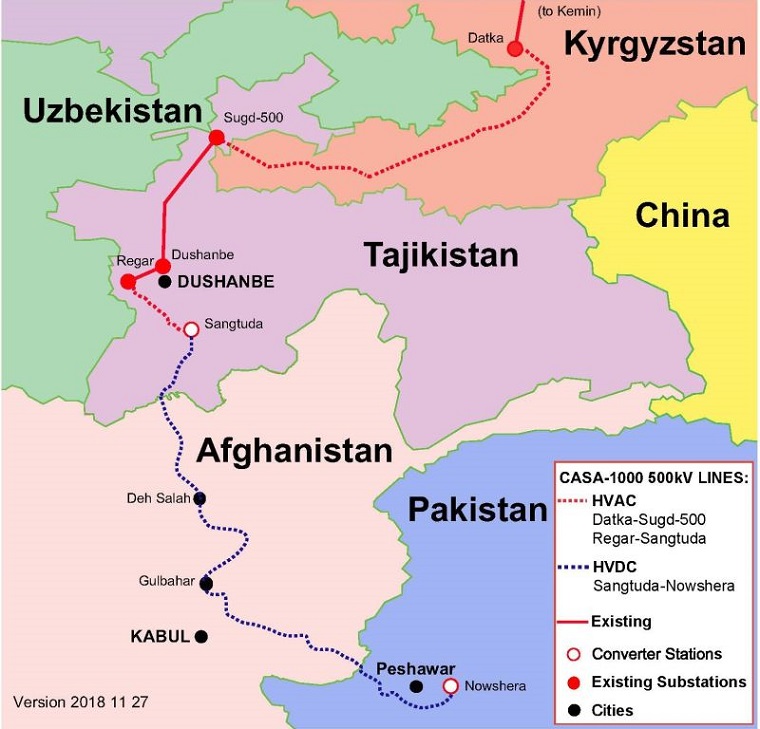 Первый секретарь посольства Таджикистана в Исламабаде Баходур Буриев в июле прошлого года рассказал пакистанскому изданию The Nation, что проект CASA-1000 успешно реализуется и будет готов к передаче электроэнергии в Пакистан и Афганистан к середине 2020 года.