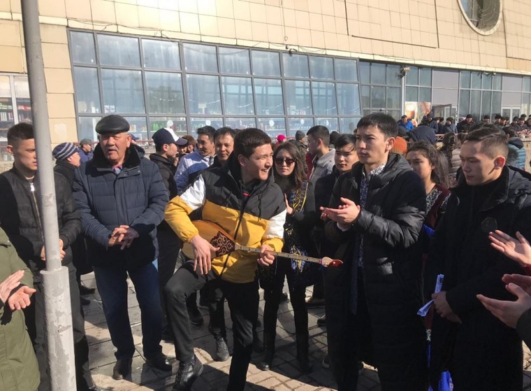 Молодые люди вплотную приближались к камере, выкрикивали поздравления с Наурызом, пели песни. Они настаивали, чтобы оператор снимал не происходившие одновременно задержания, а то, как они пляшут и поют. Съемочная группа Азаттыка обратилась с жалобой к полицейским, но те не предприняли никаких действий.
