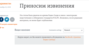 Об этом рассказала автор интервью, Шахида Тулаганова, бывший репортер ТВ «Настоящее время», совместного проекта RFE/RL и Голоса Америки. Неназванный сотрудник Озоди подверждает: «С 2015 года и до сегодняшнего дня очень редко кто предлагает статью про ПИВТ, потому что все прекрасно знают, что эта тема не будет принята. У нас есть четкое представление о том, что хочет руководство».