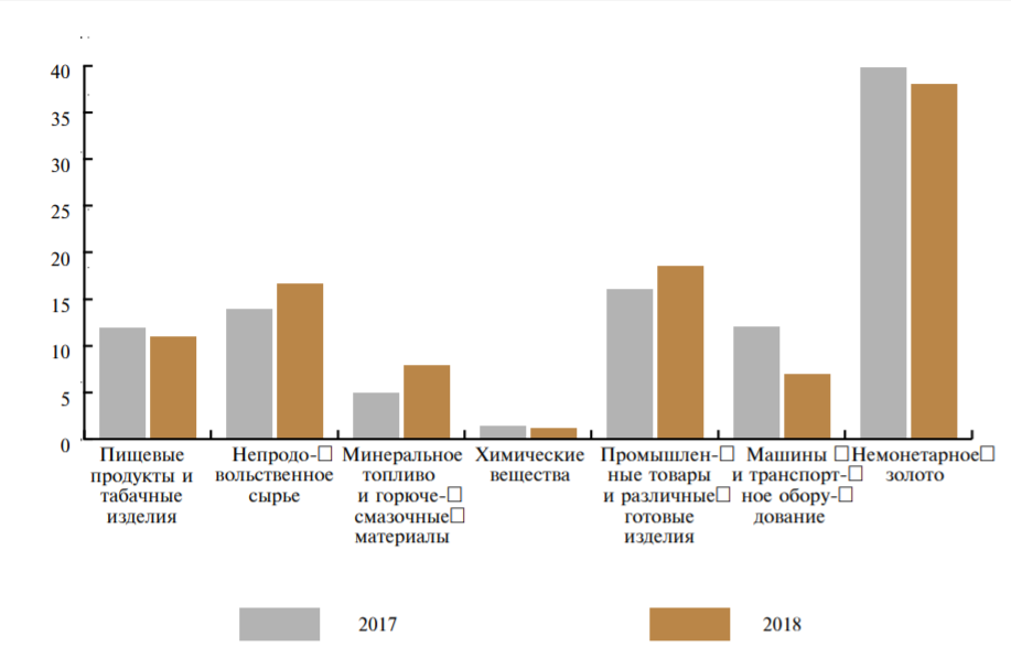 Товарная структура экспорта за январь — декабрь 2018 года (в процентах к общему объёму экспорта)