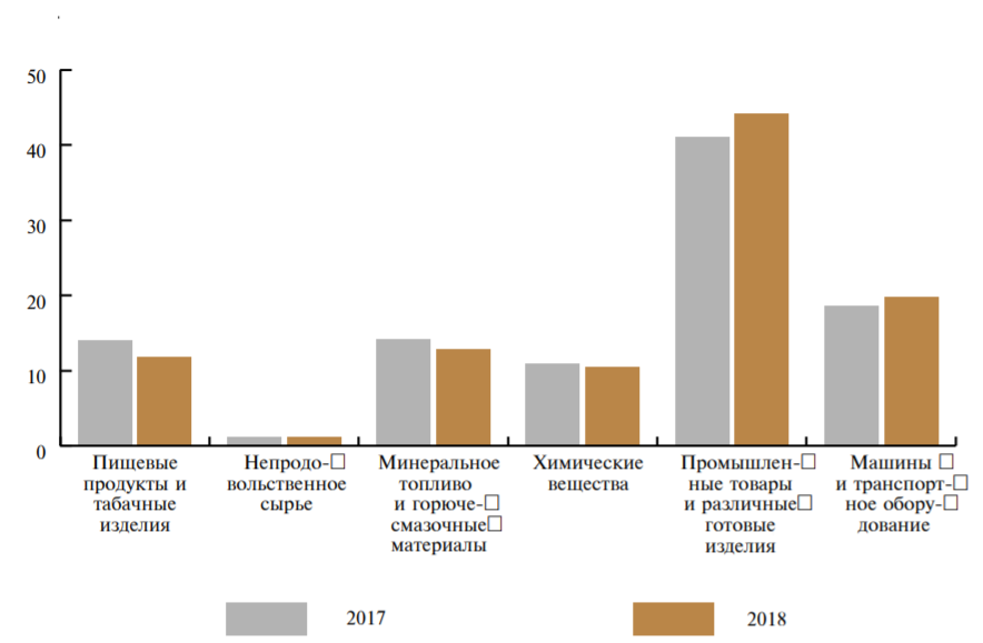 Товарная структура импорта в январе — декабре 2018 года (в процентах к общему объёму импорта)