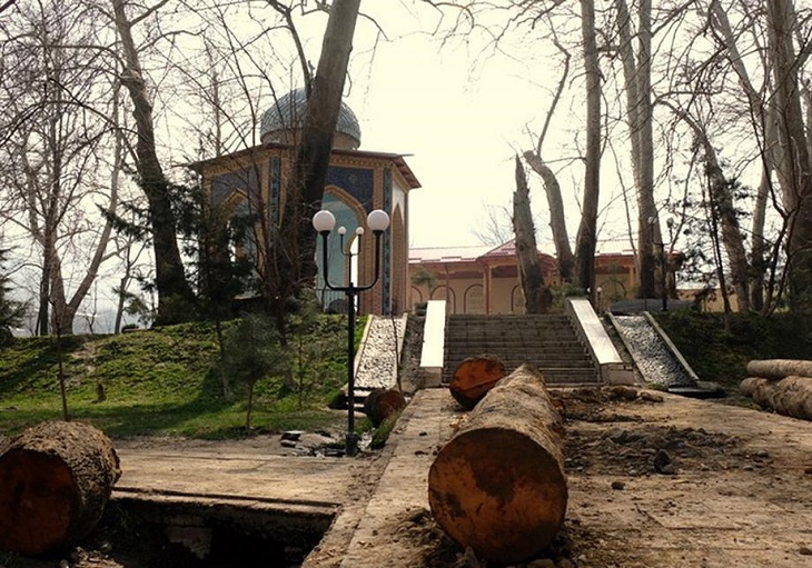 А теперь на Чор-Чиноре я видел спиленные деревья, грамотно приготовленные для продажи кругляки разных пород, а у главного дерева-школы – сваленные бетонные глыбы, оставшиеся от первой попытки возвести мавзолей Абу Талиб Сармаста.