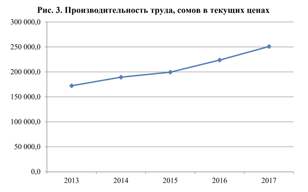 Значительное влияние на производительность труда оказывает уровень заработной платы. Так среднемесячная реальная заработная плата республики возросла в 1,4 раза, производительность труда – в 1,5 раза, что свидетельствует о некотором увеличении источников развития экономики.