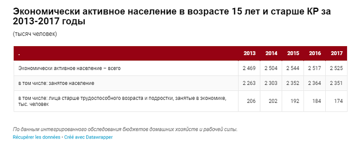 I. За последние 5 лет численность экономически активного населения КР увеличилась на 111,2 тысячи человек, или на 4,8%, что положительно влияет на социально-экономическое развитие республики (см. табл.).
