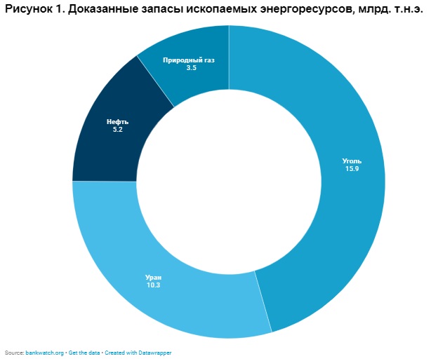Помимо того, что Казахстан уже является лидером по производству и экспорту урана в мире, у страны есть компания «Казатомпром», которая в течение многих лет занимается добычей и переработкой урана. Блестящие перспективы атомной отрасли можно по-настоящему ощутить, взглянув на диаграмму предоставленным «Центром по внедрению новых экологический безопасных технологий» по доказанным запасам ископаемых энергоресурсов.
