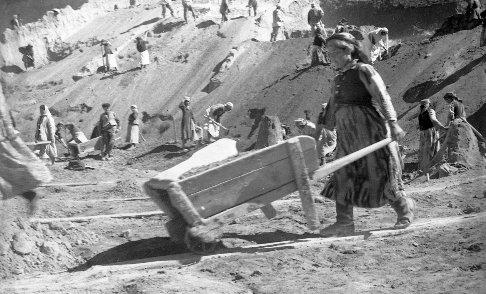 В 1940 году 18 тысяч кыргызстанцев устремились вверх, в горы. В руках у них были кирки и ломы. Работа шла и под палящим солнцем, и под дождем.