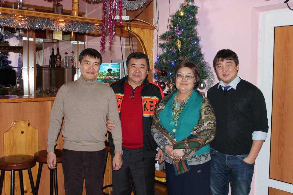 Семья Салымбековых: (слево направо) Улугбек (старший сын), Аскар Мааткабылович и его жена Гульмира Сулаймановна (ныне покойная) и Кубат (младший сын)