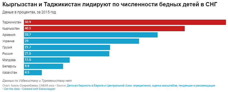 Более того, данные за 2015 показывают, что среди стран СНГ доля бедных детей в Кыргызстане была самой высокой после Таджикистана.