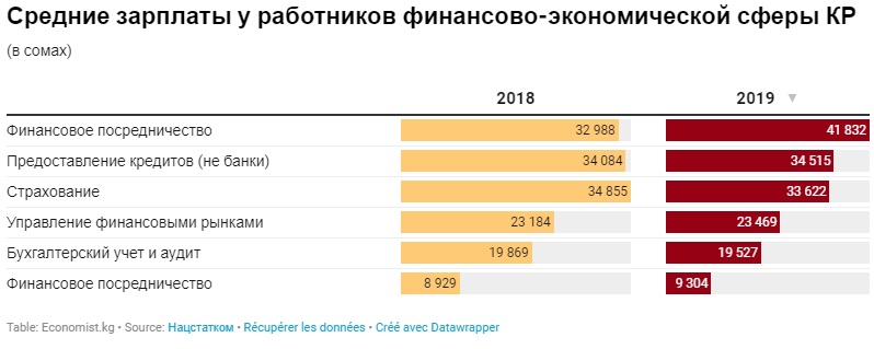 Самые высокие зарплаты наблюдались у занятых в финансовом посредничестве и предоставлении кредитов вне банковской сферы.