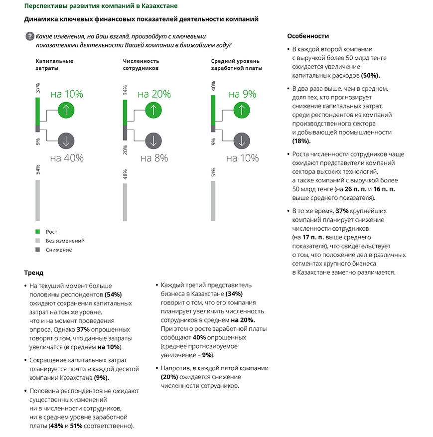 Экспертные мнения респондентов позволили выявить актуальные проблемы, ключевые факторы и направления развития экономики Казахстана, а также провести сравнительный анализ существующих тенденций