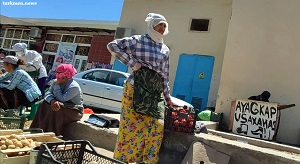 На юге и востоке Туркменистана вот уже несколько дней стоит сорокоградусная жара. В те редкие моменты, когда столбик термометра местами опускается до 38-и, для людей это уже ощутимо. Особенно для тех, кто по роду своей деятельности весь день проводит на улице под открытым солнцем, например, продавцы на базарах.