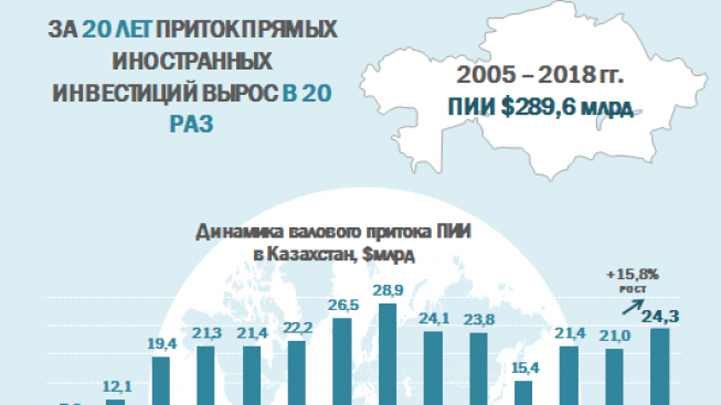 И, надо признать, Казахстан на самом деле добился серьезных успехов на этом поприще. Буквально на днях заместитель премьер-министра Женис Касымбек сообщил, что наша страна является лидером среди стран Центральной Азии по объемам притока прямых иностранных инвестиций. Согласно озвученным им данным, размер иностранного капитала, привлеченного в нашу страну начиная с 2005 года, составил почти 300 миллиардов долларов. Только по результатам 2018-го валовой приток прямых иностранных инвестиций вырос на 15,8 процента и составил 24 миллиарда долларов.