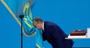 После инаугурации Токаева в социальных сетях появились шутки о том, что на церемонии он наклонился к флагу так, словно хотел высморкаться.