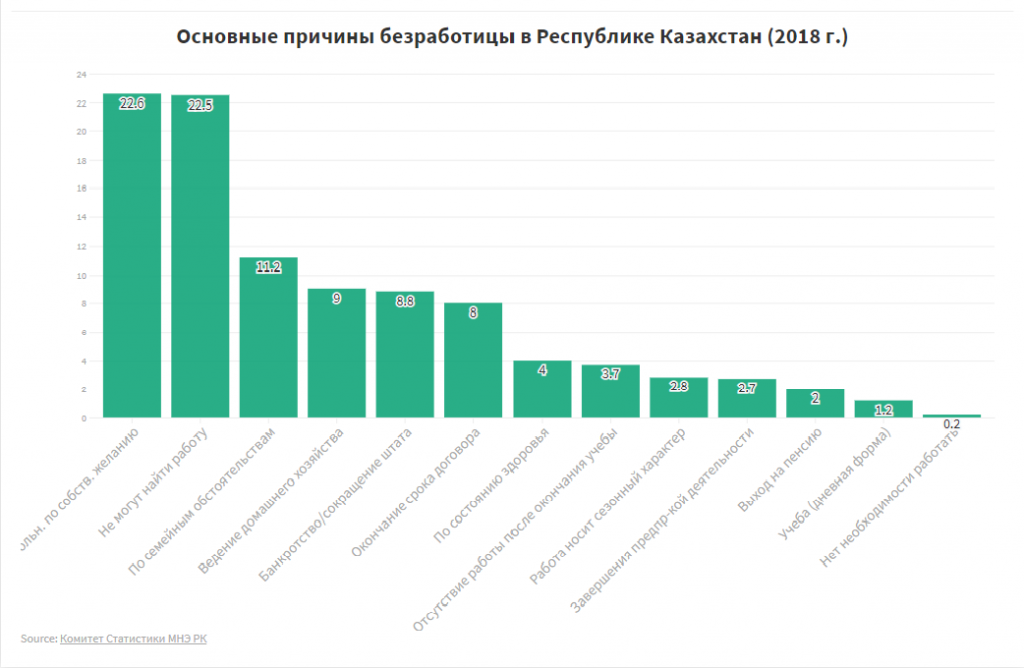 Среди важнейших причин отсутствия работы, наиболее распространёнными в РК являются следующие: