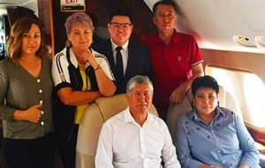 24 июля бывший президент Алмазбек Атамбаев покинул Кыргызстан через российскую авиабазу в Канте. Его советник Кундуз Жолдубаева сообщила, что приглашающая сторона отправила спецборт авиакомпании «РусДжет», тип ВС: RRJ-95B. Вместе с Атамбаевым в Москву также вылетели трое депутатов ЖК от СДПК. По словам Жолдубаевой, «в Москве ожидаются встречи на самом высоком уровне».