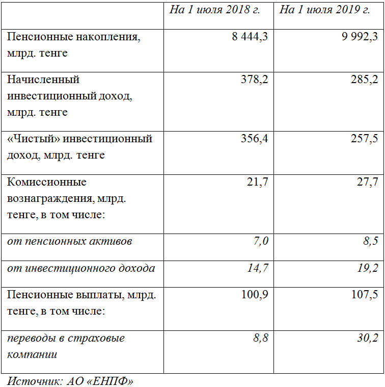 В годовом выражении их общий размер увеличился за июнь весьма значительными темпами — на 27,6%. Объем вознаграждения, рассчитываемого от пенсионных активов, вырос на 21,4% (до 8,5 млрд тенге). А от инвестиционного дохода – на 30,6% (до 19,2 млрд).