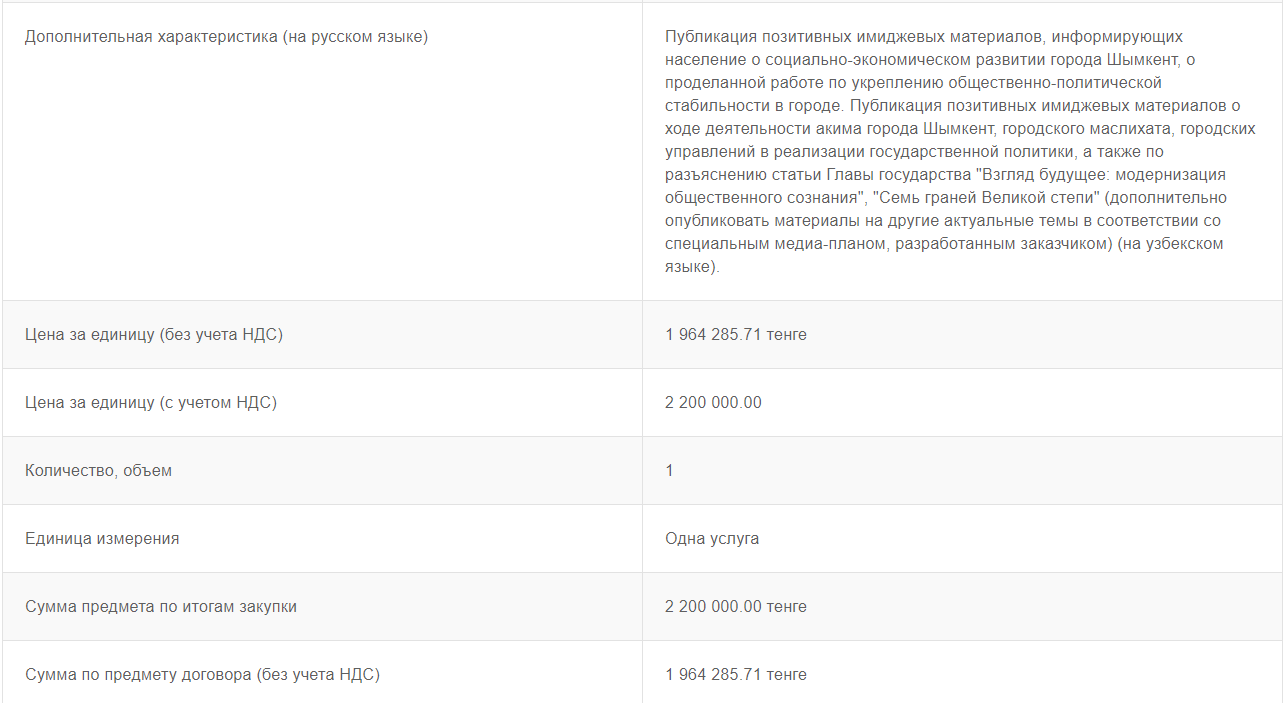 Государственный заказ на продвижение позитивного имиджа акима Шымкента / Источник goszakup.gov.kz