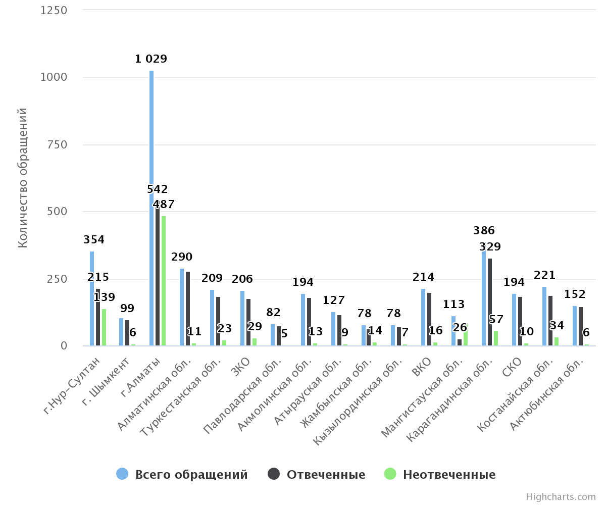 Помимо мнения эксперта можно привести статистику государственной блог-платформы "Открытый диалог Egov". В 2019 году казахстанцы задали 4032 вопроса акимам, которые проигнорировали 25% обращений. Только 6 из 10 ответов были удовлетворительными.