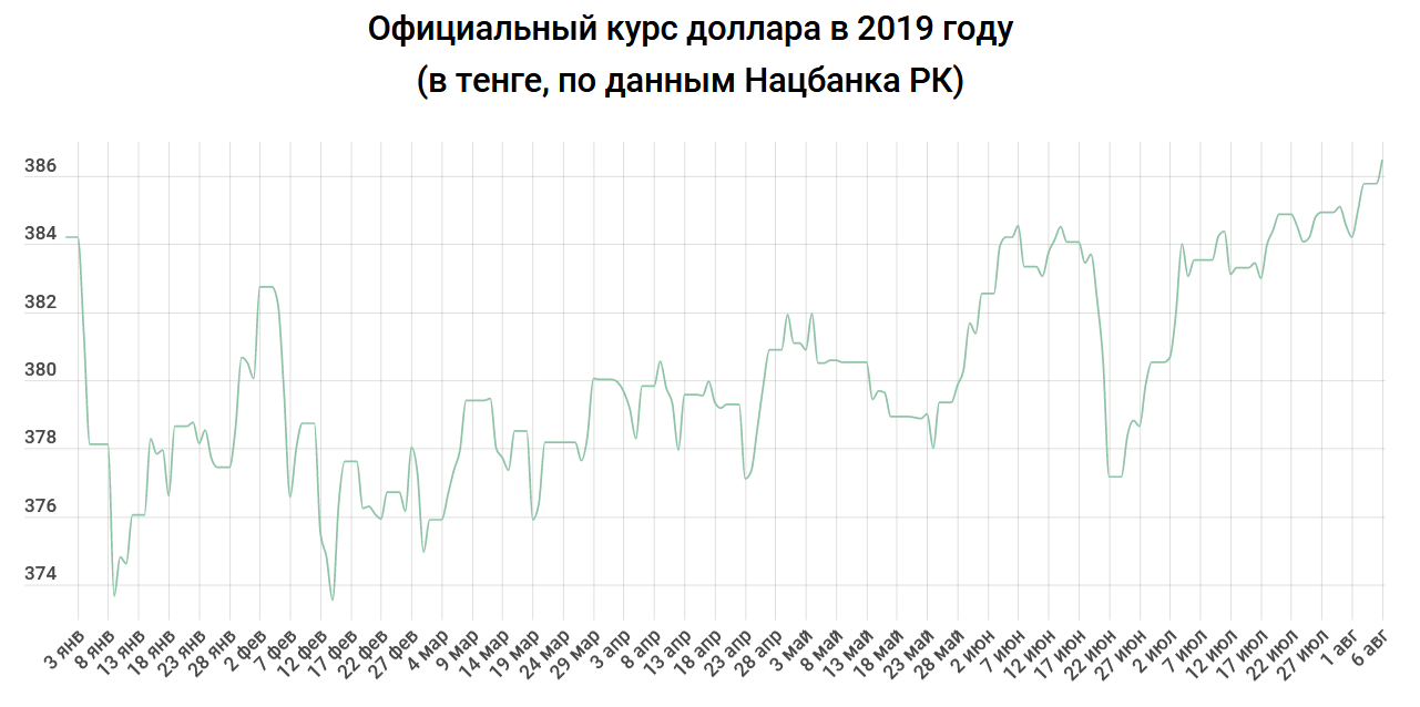 Официальный курс доллара на 6 августа – 386 тенге 47 тиын. В обменных пунктах стоимость продажи американской варьируется около отметки в 388 тенге. Однако учитывая ситуацию в мире, нынешний показатель – далеко не худший из всех возможных.
