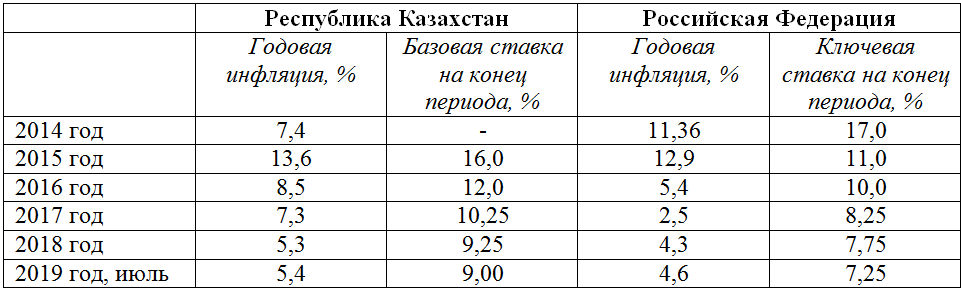 В итоге разрыв между годовой инфляцией и ключевой ставкой центрального банка в Казахстане остался на прежнем уровне в 3,6%, тогда как в России она уменьшилась с 2,8% до 2,65%.