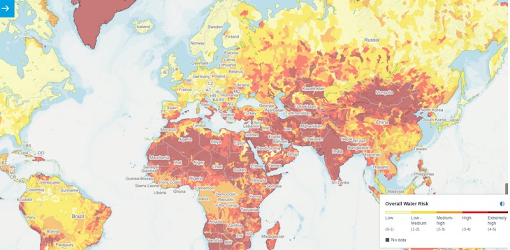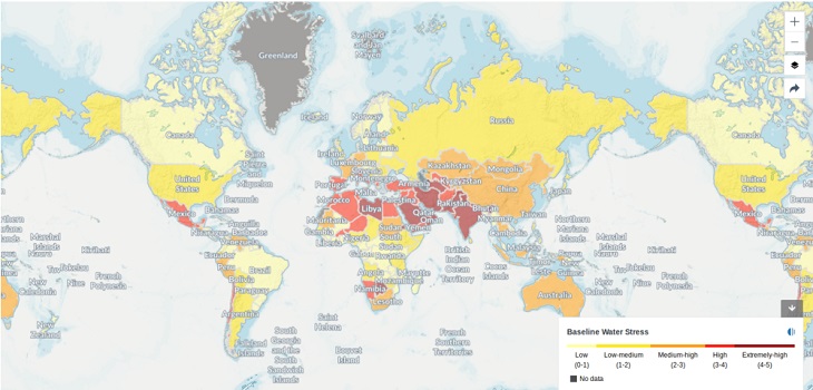 В атласе водных рисков института мировых ресурсов (WRI) оценивается недостаток воды, риски засухи и паводков: