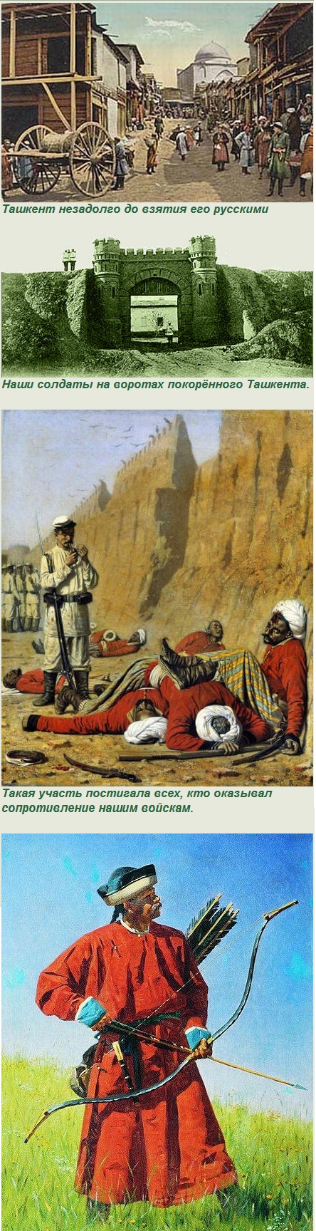 Для Кокандского ханства Ташкент был важным форпостом. Опираясь на эту крепость, предки нынешних гастарбайтеров совершали набеги на казахские аулы и русские гарнизоны, угоняя скот, похищая женщин и детей. Казахское население неоднократно жаловалось на кокандцев русским властям, а представители местных русских властей неоднократно рапортовали в Петербург о нетерпимости для России и её подданных такого соседства.