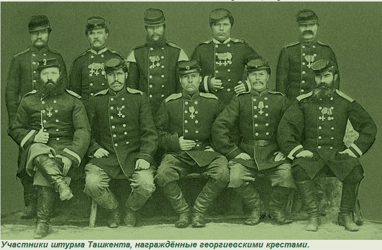 В результате смелых и решительных действий Михаила Григорьевича Черняева, отряд в 1300 штыков и сабель при 10 орудиях взял штурмом громадный город 24 версты в окружности (не считая городских садов) с стотысячным населением, вооружённый 63 орудиями, обороняемый 30 тысячами защитников, из коих до 5 тысяч регулярной пехоты и до 10 тысяч кокандской кавалерии, затем два дня дрался на улицах города, взял штурмом до 40 баррикад, до 10 барбетов — и потерял убитыми 25 нижних чинов; ранеными 3 офицеров и 86 нижних чинов, контуженными 4 офицеров и 24 нижних чинов; кроме того ранено и контужено около 15 человек казахского ополчения — всего 157 человек. В ходе штурма взято 63 орудия, 16 больших знамен, множество ружей, 2000 пудов пороха и 10 000 разных снарядов. С покорением Ташкента, — доносил тогда Черняев, — мы приобретаем положение в Средней Азии, сообразное с достоинством империи и мощью русского народа.