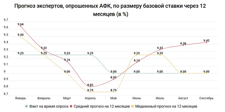 Между тем данное решение для финансового сектора было достаточно неожиданным. Так, 61,1% профессиональных участников финансового рынка, опрошенных АФК, ожидали сохранения базовой ставки на уровне 9,0% годовых. 16,6% экспертов прогнозировали ее повышения на 25 б. п. Оставшиеся 22,2% ожидали более агрессивных мер по ужесточению ДКП», — отмечают в АФК.