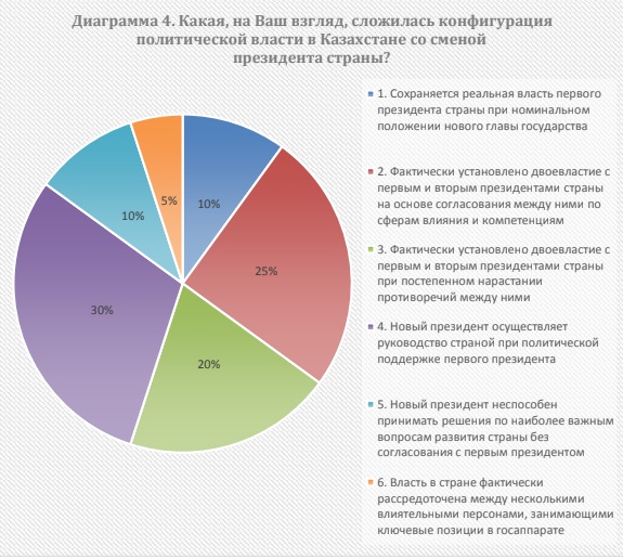 Эксперты отметили ряд особенностей нынешней политической системы страны. Нурсултан Назарбаев, по мнению респондентов, с учетом его следующих статусных позиций фактически продолжает играть руководящую роль