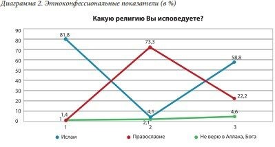 Ислам исповедуют 2/3 респондентов, православие – каждый пятый, атеистов менее 2%