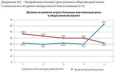 62,5% бедных считают, что религия должна играть меньшую роль в жизни государства и общества