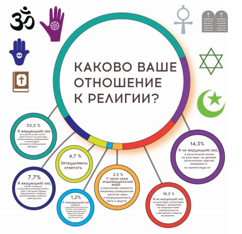 Практически две трети принявших участие в опросе выбрали вариант ответа «я верующий, но в религиозной жизни практически не участвую», максимум праздники и некоторые обряды.