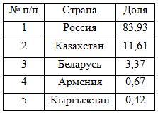 Наибольший удельный вес ВВП (более 83,93%) приходится на Россию, соответственно она и будет иметь значительную долю в корзине валют.