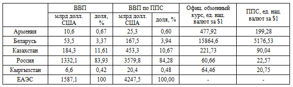 Определим долю каждой страны в безналичной валютной единице путем отношения основных социально-экономических показателей стран к ЕАЭС в целом: