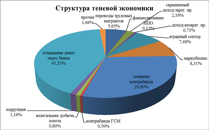 Ранее проведенные исследования показывали, что в стране были наиболее развиты товарная контрабанда, наркоторговля, коррупция, коммерческие взятки и проституция.