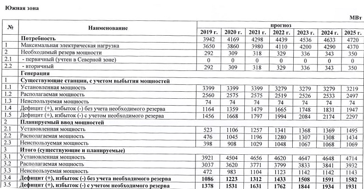 Дефицит Южной энергозоны покрывается за счет передачи электроэнергии с севера, однако это приводит к высоким потерям и снижает общую надежность работы системы. Как видно из таблицы, по прогнозу Минэнерго дефицит электроэнергии на юге будет с каждым годом только увеличиваться.