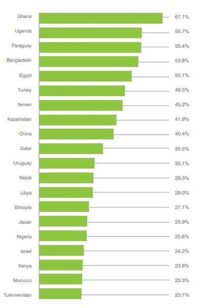 Кроме Казахстана и России из стран бывшего СССР в топ-50 никто не вошел. Украина расположилась на 56 месте (+2 строчки), Литва – 69-я (-4 позиции), Узбекистан – 70-й (+2), Туркменистан – 79-й (+7), Эстония – 81 (0), Латвия – 82 (-2), Азербайджан – 86 (-4),