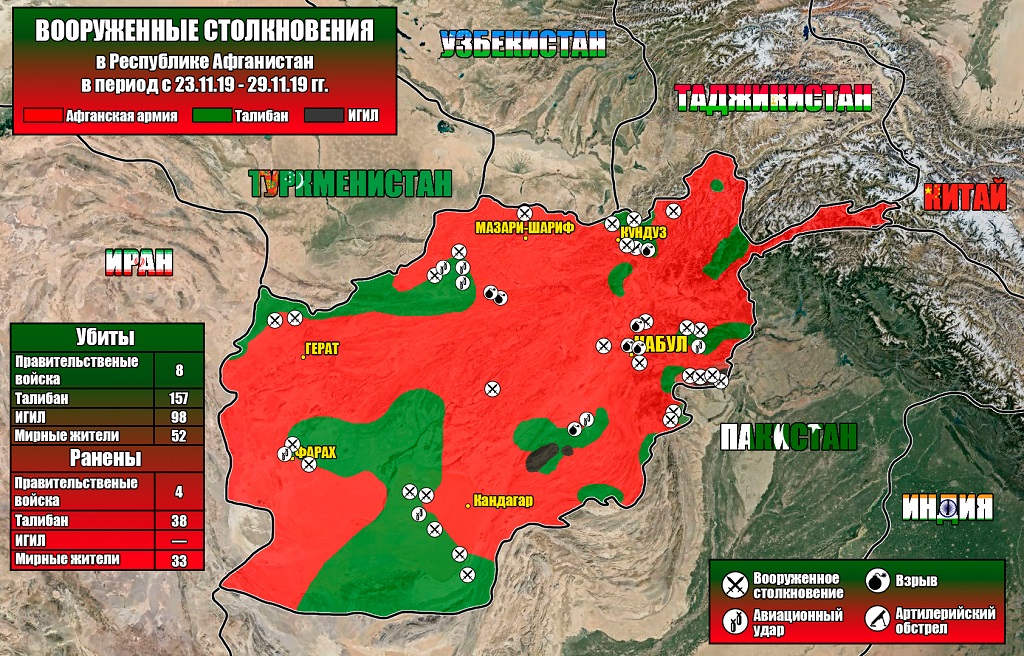 В результате авиаударов погибло 8 боевиков движения «Талибан» и ИГИЛ в 4 провинциях: Фарах, Гильменд, Нангархар, Герат.