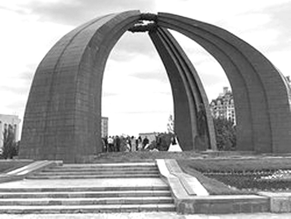 Монумент «Дружба народов» представляет собой образец советской классики. Два высоких пилона из белого мрамора опоясаны выразительным горельефом с фигурами, олицетворяющими кыргызский и русский народы, связанные узами нерушимой дружбы.