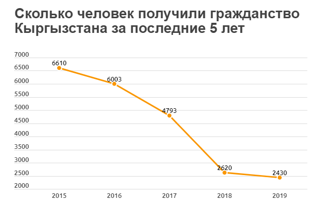 "С 2015-го кыргызстанское гражданство получили 22 тысячи 456 человек. Подавляющее большинство, то есть 82%, составляют этнические кыргызы", - отмечается в сообщении.