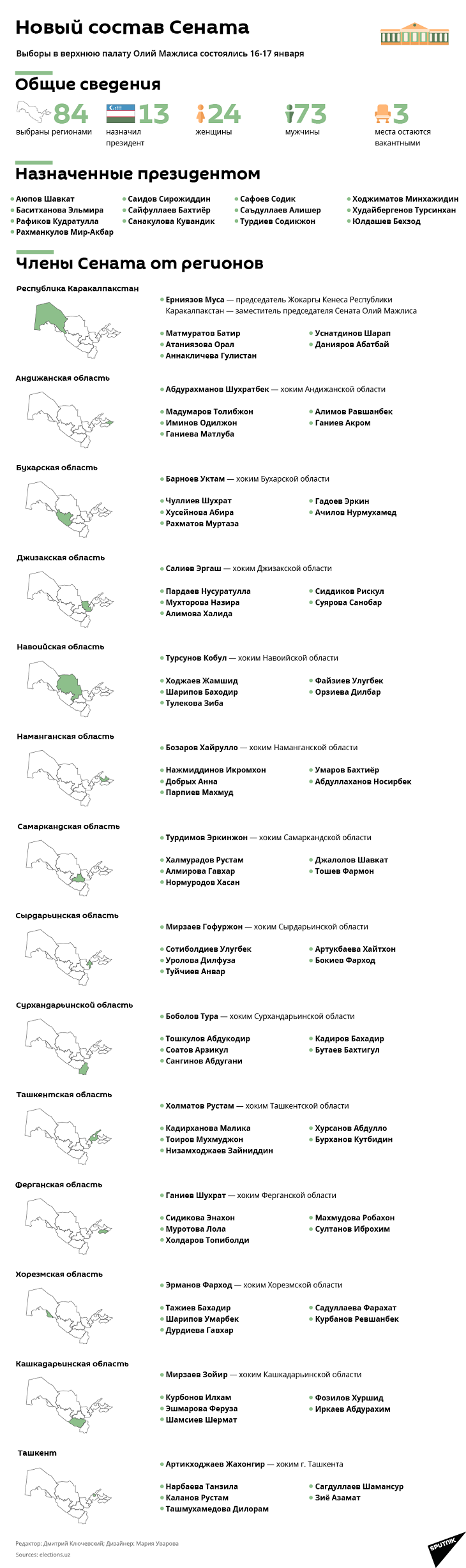 Как выглядит новый состав Сената, смотрите в инфографике Sputnik Узбекистан.