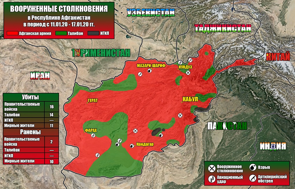 Правительственные войска преимущественно осуществляют воздушные удары против небольших отрядов противника. Крупнейшей атакой талибов стало нападение на полицейских в районе Навабад-Андарабиха (Кундуз, север страны).
